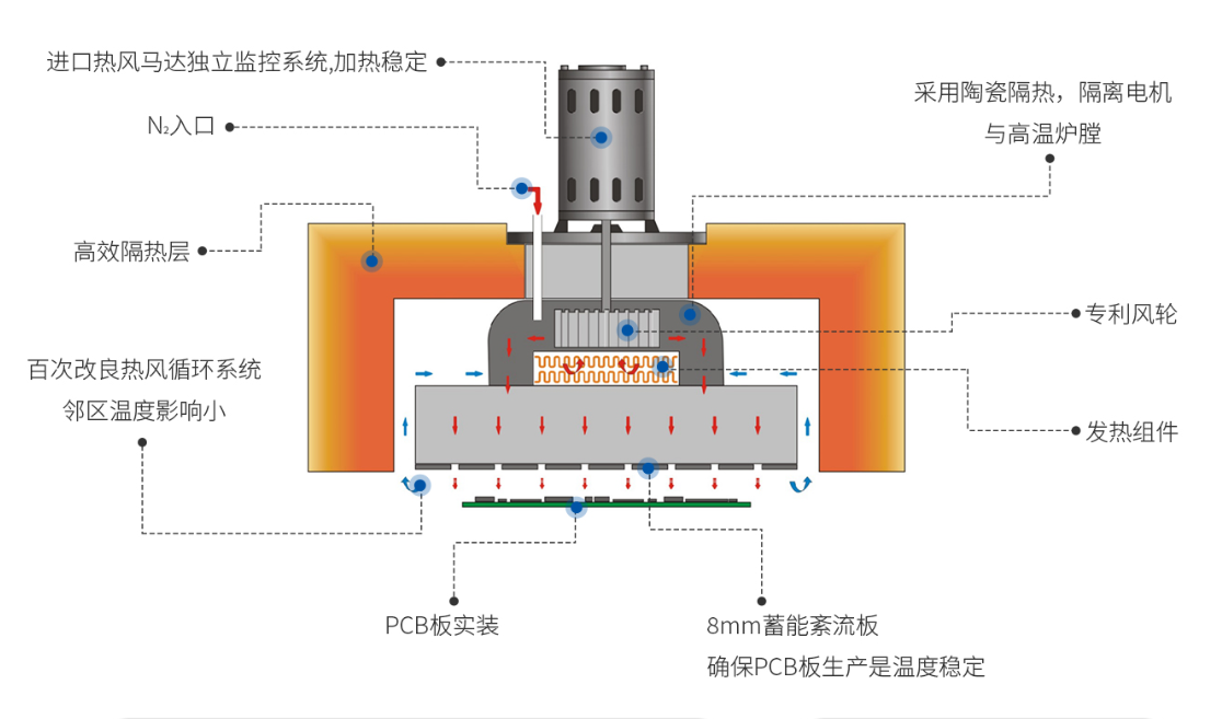 無鉛焊接,配備獨立助焊劑回收系統,爐腔無需常清理。